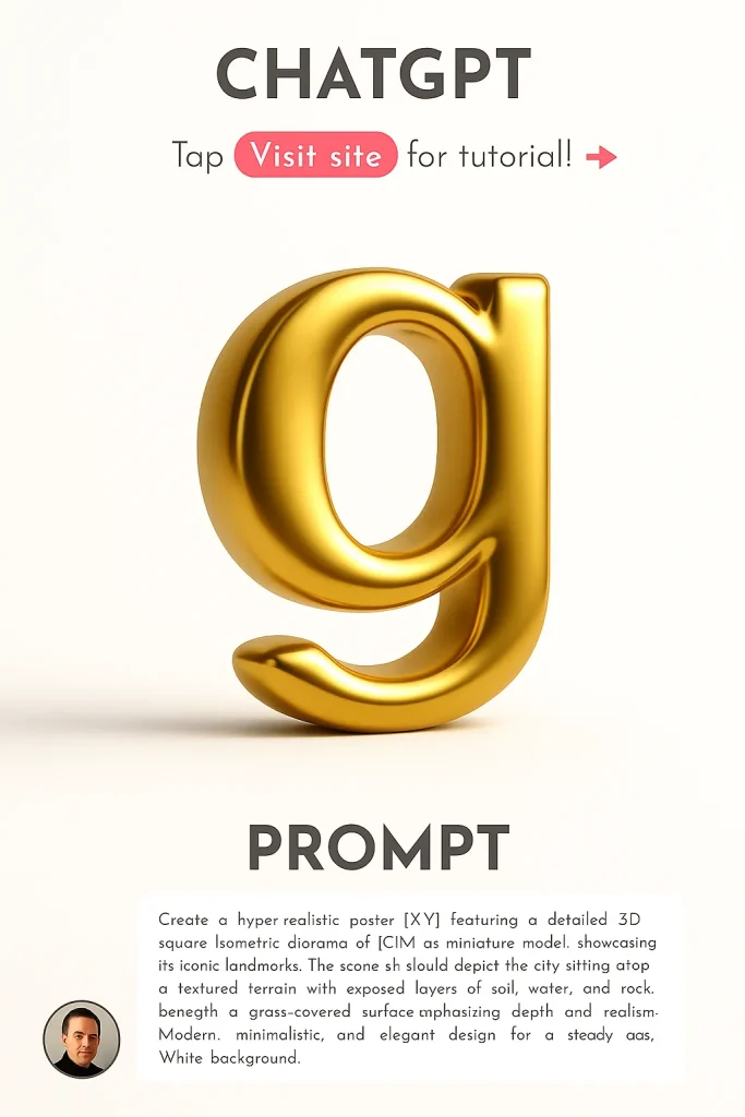 If you’re a designer, digital artist, or content creator looking for modern and luxurious typography visuals, this AI prompt is the perfect place to start. Featuring a golden letter G, floating gracefully on a pure white background, this prompt combines clean design, realistic lighting, and 3D detail — all essential ingredients for premium-looking content.